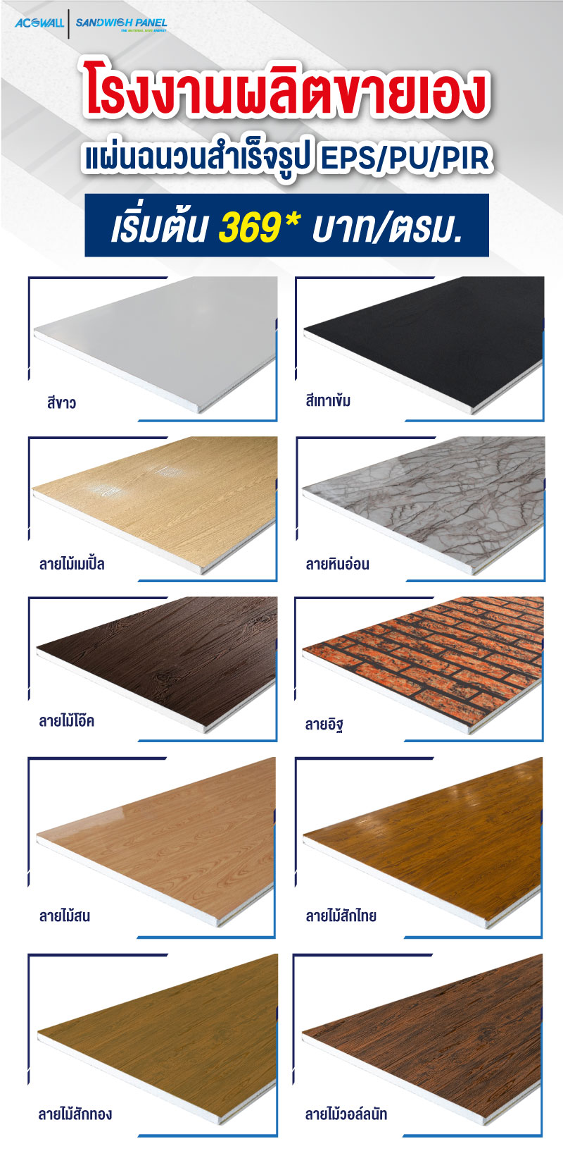 ลายแผ่น แผ่นฉนวนสำเร็จรูป AC WALL หรือคนทั่วไปเรียกว่า isowall ไอโซวอลล์