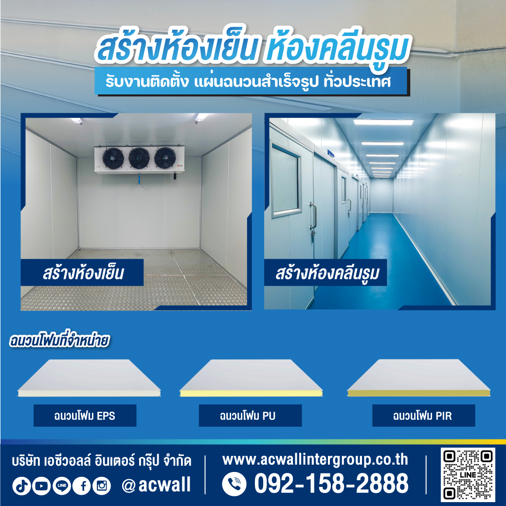 แผ่นฉนวนสำเร็จรูป AC WALL หรือคนทั่วไปเรียกว่า isowall ไอโซวอลล์ เป็นวัสดุที่นิยมใช้กันมากในงานห้องเย็น เนื่องจากมีคุณสมบัติที่โดดเด่นในการควบคุมอุณหภูมิภายในตัวห้องได้อย่างดี ทำให้เหมาะอย่างยิ่ง สำหรับงานที่ต้องเกี่ยวข้องกับการใช้อุณหภูมิอย่างห้องเย็น วัสดุของตัวแผ่นฉนวนสำเร็จรูปจะเป็นแผ่นหน้าเหล็กหนา 0.45 ซึ่งจะได้รับมาตรฐานการรับรองจาก GMP. (มาตรฐานอาหารและยา)